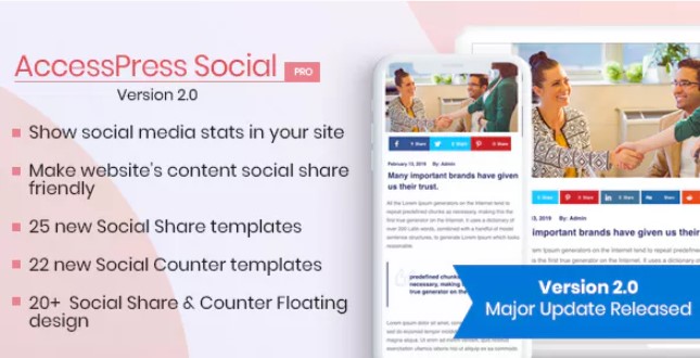 AccessPress Social Pro v2.1.0 is a premium WordPress plugin that allows anyone to easily share website content on major social media websites. The plugin features are 20+ Social Profiles, 20+ Beautiful themes, 5 soothing animations, Configurable Floating, Widget, Beautiful CSS3 animation, Dark and light design themes, Fast load-time, Wide share, great viral, Cache setting, Highly customizable and much more. if you want you can also able to download the previous version of this plugin www.themes24x7.com/download-accesspress-social-pro-v2-0-7/">AccessPress Social Pro v2.0.7. for more information about this WordPress plugin please click On Demo Button.