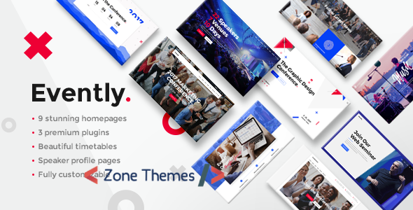 Evently v1.6 – Event & zonethemes.info/tag/conference-wordpress-theme/">Conference WordPress Theme is a modern event and conference theme, ready to rock! Packed with 9 amazing homepages, 3 premium plugins and a wide array of layouts specially created for showcasing speakers and events, Evently has all you may need for an amazing website. Introduce your speakers and share the details about your event, conference or meetup like a professional. You can also create a detailed event schedule, share the blog stories or sell your products online with Evently. Create your event, start today.