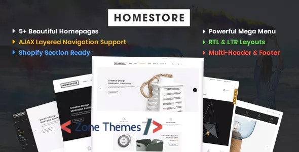 HomeStore v1.0 – Modern Minimal & zonethemes.info/tag/multipurpose-shopify-theme/">Multipurpose Shopify Theme is a clean and elegant responsive Bootstrap 4 Shopify Theme which is carefully designed with up to 5 homepages in regards to architecture, interiors, furniture, home deco, kitchen and products. Theme also comes with mobile layouts, full of eCommerce features, and drag and drop website builder.