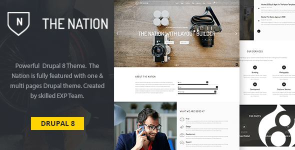 Nation v1.0 – One & multi pages Drupal 8 theme