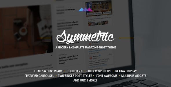 Symmetric is a well structured magazine theme for Ghost. It is focused in the content and extend main Ghost funcionalities so the user get a unique web experience in this platform.